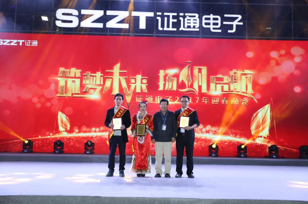 ?? 曾總提出,2017年證通電子應明確戰略目標,把握業務方向、思路以及重點工作,推進管理升級,形成管理沉淀豐富證通的組織文化;改善組織機能,形成目標導向的組織績效管理;提升人員素質和基本技能。2016年證通電子成績卓然,2017年更該奮起。筑夢未來,揚帆啟航”證通電子總裁曾勝強先生的精彩致辭過后,迎春晚會暨2016年度表彰大會正式開始。本次大會共表彰了2016年具有杰出表現的年度優秀員工70名、杰出員工3名及優秀團隊5支,并由到場領導為他們頒發綬帶、錦旗和獲獎證書。